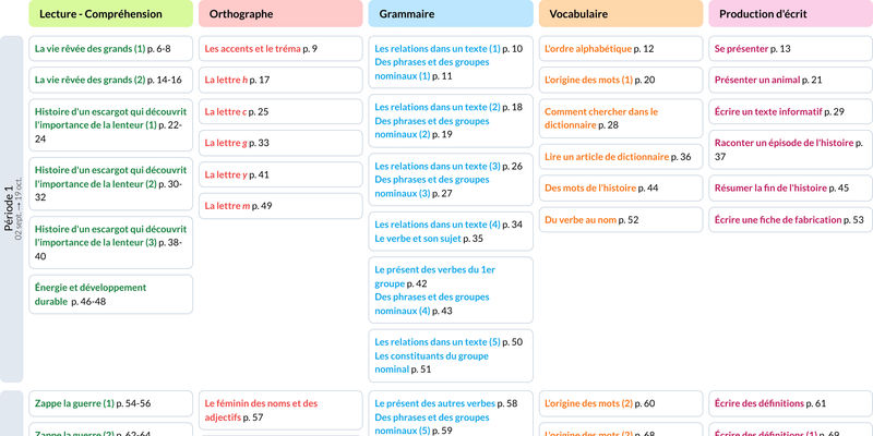 Découvrez cette programmation de français issue du manuel "Mon année de Français CM2" (Nathan). Utilisez cette ressource telle quelle ou personnalisez-la en la modifiant directement en ligne sur Teetsh.